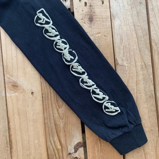 フロント、バック、左袖にプリントのグラフィックがプリントされて、場所によっては発砲プリントされていて手の込んだ1着です。