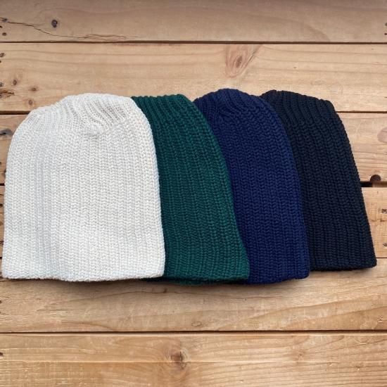 こちらのニットキャップも60年代の旧式編み機を使用して編み上げられており、ざっくりした独特の風合いが魅力的です。