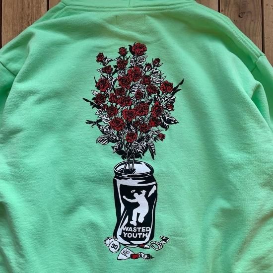 パーカーは、背中にはUnion の缶に花束が大きくプリントされています。
