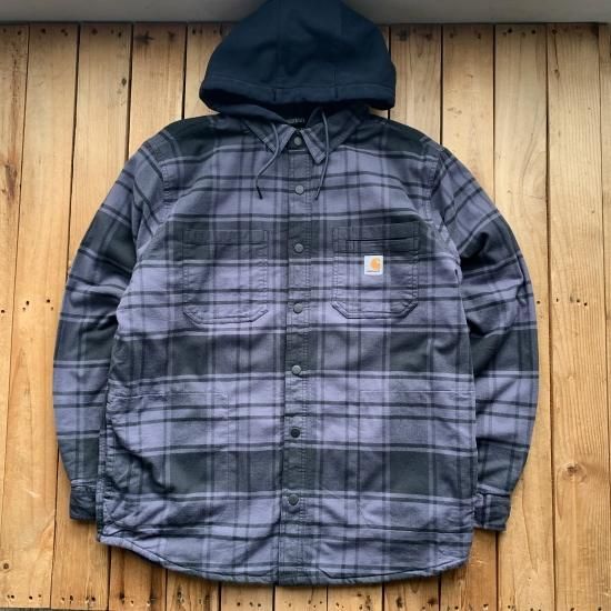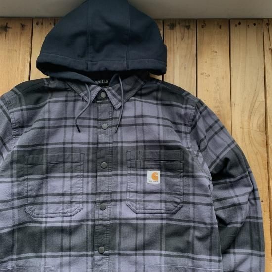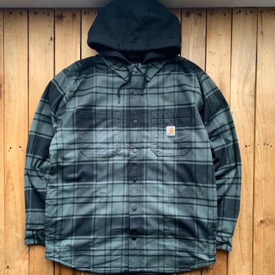 カーハート ラグドフレックス リラックスフィット フランネル ラインド フーディッド シャツ