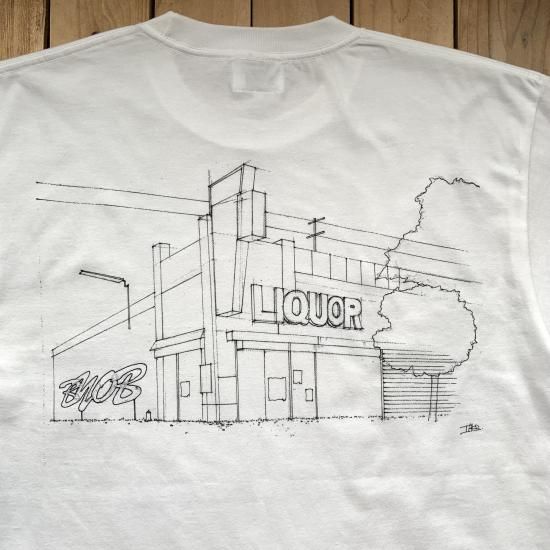 º¸¶»¤Ë "BYOB" ¤¬¥É¥ê¥Ã¥×¤·¤¿¥¢¥¦¥È¥é¥¤¥ó¥í¥´¡¢¥Ð¥Ã¥¯¤Ë¤Ï "Liquor Shop" ¤Î¼ê½ñ¤¥é¥Õ¤Î¤è¤¦¤Ê¥Ç¥¶¥¤¥ó¤¬¥×¥ê¥ó¥È¤µ¤ì¤Æ¤¤¤Þ¤¹¡£