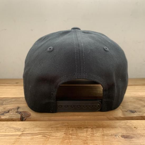 シェニールスナップバックキャップはフロントにシェニールのパッチがついていて、サイドにはストックロゴが刺繍されています。