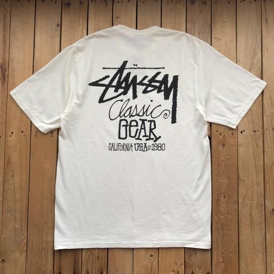 左胸とバックにステューシー のストックロゴと "Classic Gear Carfornia USA 1980" とプリントされています。絶妙な色落ち感のあるボディカラーがいい感じです。
