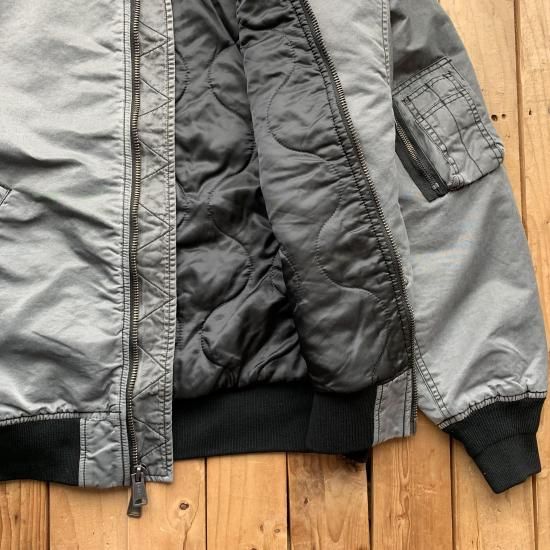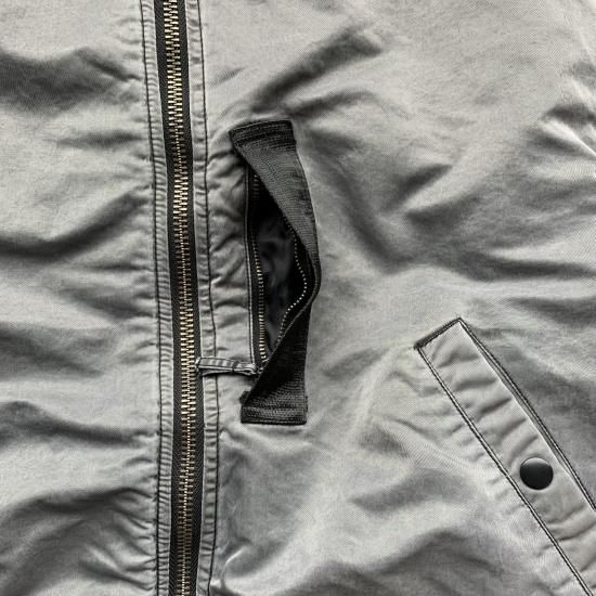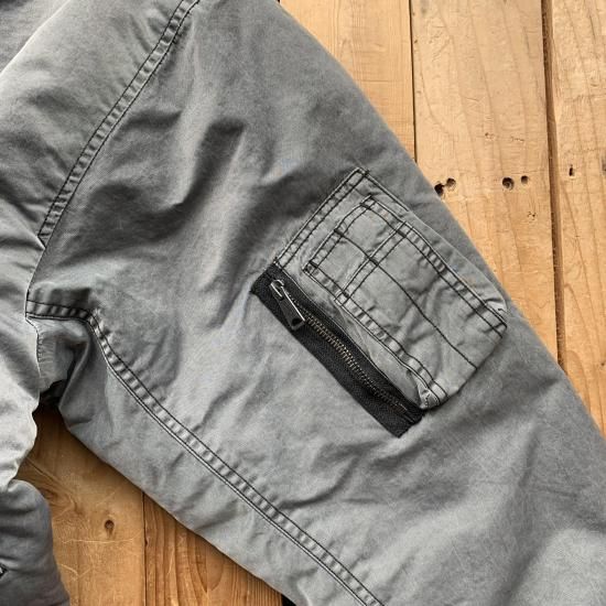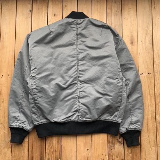 肉厚なヘビーナイロンツイル生地をピグメント染めしたMA-1。難しいとされるナイロンへのピグメント加工を施し、特徴的なあたりとパッカリングが生まれた生地は、ヴィンテージのような風合いになっています。
