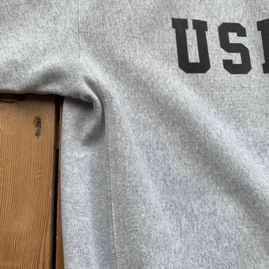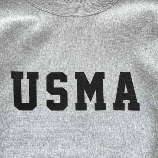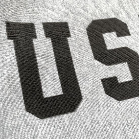 ミリタリーリバースの名品、USMA(陸軍士官学校)のロゴを、インクの浸透率を上げた、超染み込みプリントで再現しています。濃杢+ガゼット付きのものが有名ですが、今回は90'sのシンプルなタイプの方をオリジナルボディでリプロダクトしてます。