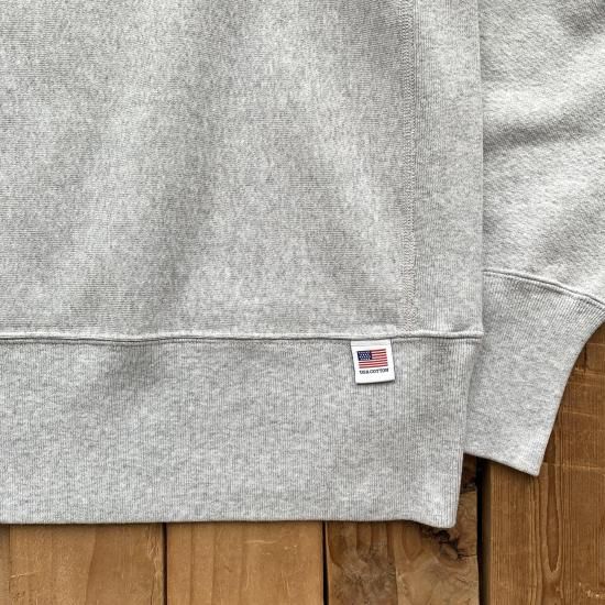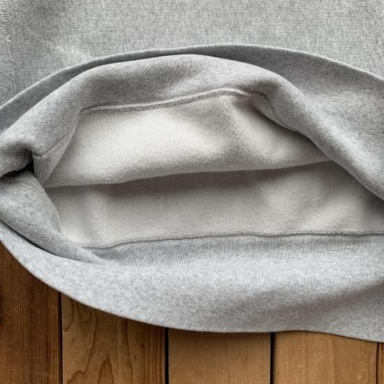 脇にリブ切り替えの入った、裏起毛のリバースタイプのスウェット、贅沢にU.S.コットンを使用して編み立てています。
