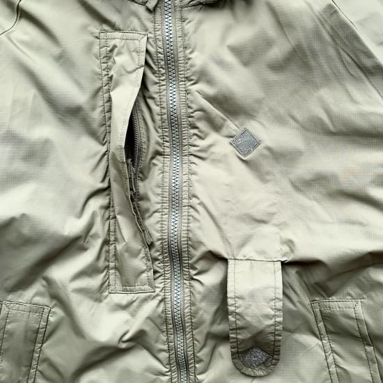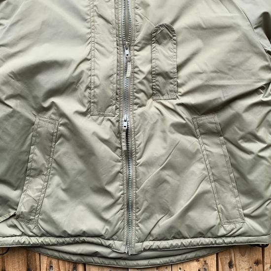イギリス軍の PCS(Personal Clothing System)という寒冷地向けレイヤリングシステムの一部である中綿入りジャケットのご紹介です。撥水加工を施した軽量なナイロン素材でできており、軽量なのに保温性に優れているのが特徴です。また、襟に収納可能なフードや、胸ポケットに収納できるパッカブル仕様など、高い機能性を持つことから、軍装品としてだけでなく、普段使いのアウターとしても人気があります。